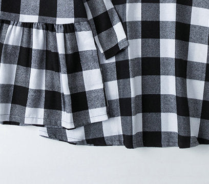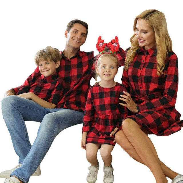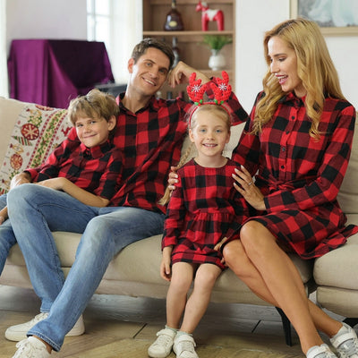 Party Family Matching Outfits with long sleeves and plaid pattern.